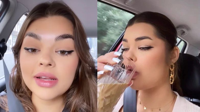 Mołczanow relacjonowała ostatnio jak jedzie "na miasto", by załatwić sprawunki. Zabiegana influencerka musiała wziąć do auta kawę w szklance, bo zgubiła gdzieś termos. Później nagrała jak prowadzi (?) auto, trzymając w jednej dłoni szklankę z kawą, a a w drugiej smartfona...