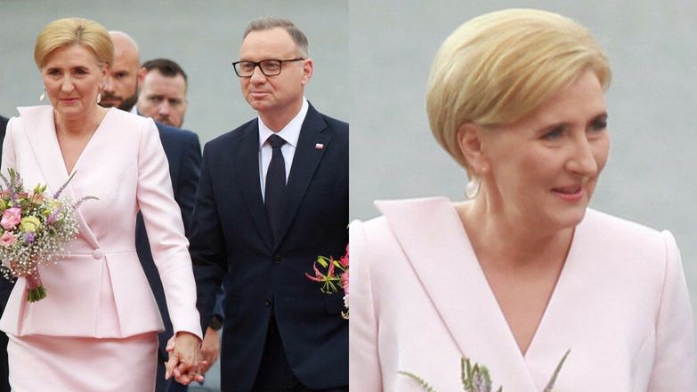 PIERWSZE WYJŚCIE Agaty Dudy po ślubie córki. Pierwsza dama włożyła różowy komplet na wizytę w Pradze
