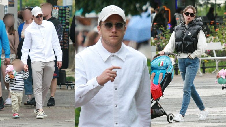 Piotr Zieliński i jego żona przechadzają się po Sopocie, prezentując drogie stylizacje. Rodzina jak z obrazka? (ZDJĘCIA)