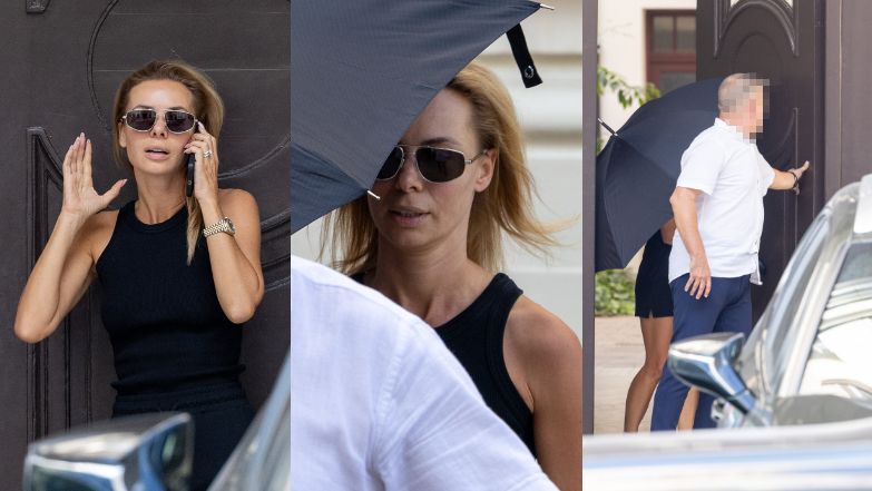 Izabela Janachowska została zauważona przez paparazzi, gdy opuszczała luksusową posesję. Celebrytka rozmawiała z kimś przez telefon, a na jej ręku można było dostrzec błyszczącą się biżuterię. Po chwili ślubna ekspertka dostrzegła paparazzi i ruszyła w stronę samochodu, zasłaniając się parasolem.