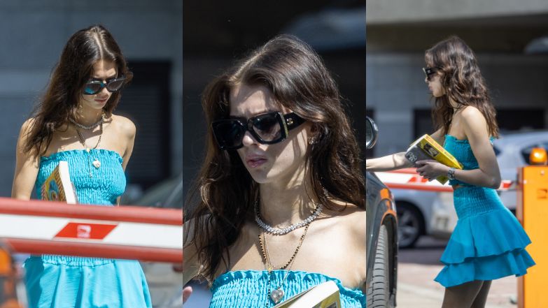 Ukochana Kevina Mgleja tego dnia postawiła na niebieską stylizację, składającą się z krótkiego topu oraz spódniczki mini. W ręku dzierżyła książkę. Ostatnio pochłonęła ją autobiografia Michała Figurskiego.