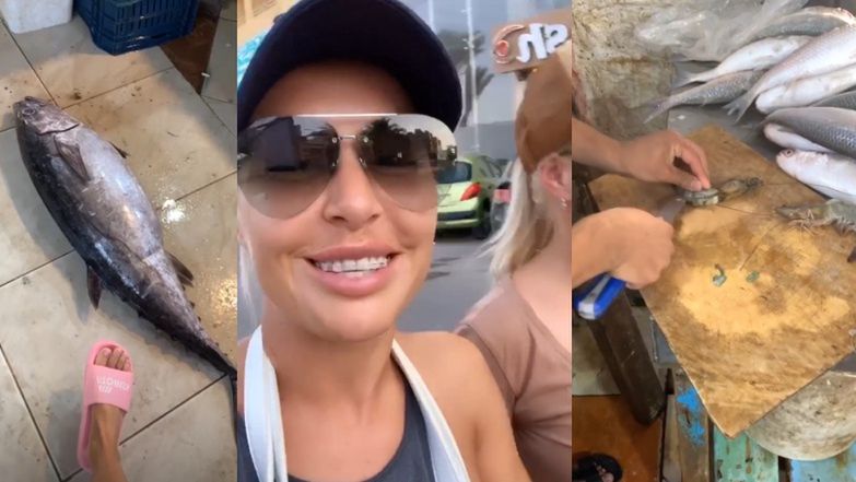 Tu jest strasznie ślisko, a my ubrałyśmy klapki. Jakbyśmy tu przyjechały pierwszy raz... - ubolewała celebrytka, następnie prezentując między innymi swoje zakupy na kolację oraz wnętrzności wypatroszonej ryby.