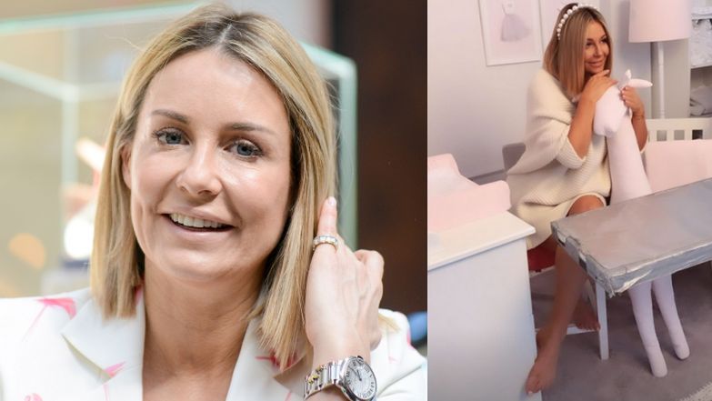 Na zamieszczonych przez żonę Radka na instagramowym profilu nagraniach widzimy, jak ubrana w "oversizowy" jasny sweter przyszła mama z zaangażowaniem wpatruje się w obiektyw aparatu. Uśmiechnięta od ucha do ucha 41-latka, stojąc na palcach pozowała przy komodzie z przewijakiem.