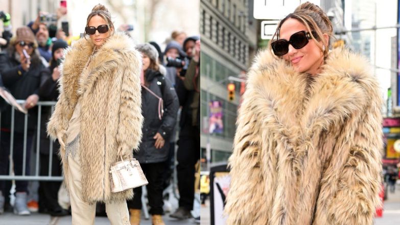 Podziwiana przez tłum fanów Jennifer Lopez BŁYSZCZY na Times Square w futrze, dzierżąc torebkę za ponad 600 TYSIĘCY ZŁOTYCH (ZDJĘCIA)
