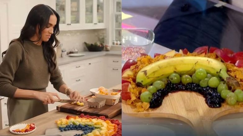 Żona księcia Harry'ego przygotowuje potrawy i wypieki, które każdy widz będzie w stanie odtworzyć w swoim domu. Jednym z najprostszych dań, jakie zaserwowała, okazała się tęczowa taca owocowa, którą Meghan często przygotowuje dla swoich pociech. Wspomniała, że wspólnie z Archiem i Lilibet zdarza im się rozpoczynać weekend właśnie w takim słodkim stylu.