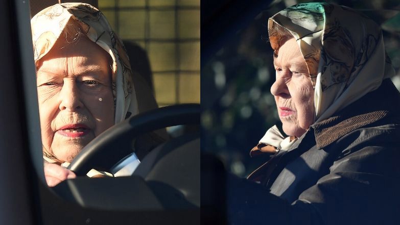 Posępna królowa Elżbieta II rozmyśla o Harrym i Meghan za kierownicą range rovera