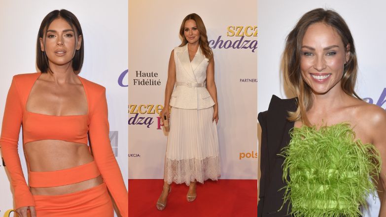 Premiera filmu "Szczęścia chodzą parami" przyciągnęła na czerwony dywan kilka znanych nazwisk. Na ściance nie zabrakło rzecz jasna odtwórczyni głównej roli, Weroniki Książkiewicz, która tego wieczora wystąpiła w eleganckim garniturze i pierzastym topie. O odpowiednio efektownej stylizacji nie zapomniała także Klaudia Halejcio. Celebrytka wystroiła się w dopasowaną pomarańczową suknię z odważnym wycięciem eksponującym jej wyćwiczone mięśnie brzucha.