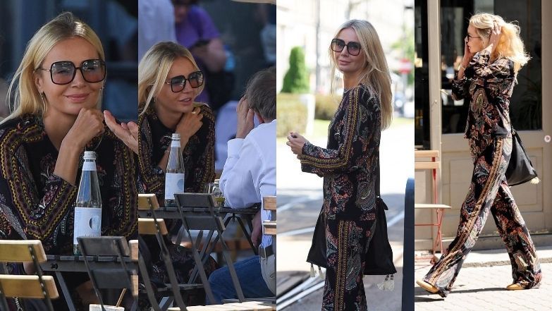 Tego dnia prezenterka postawiła na typową letnią stylizację - czarny wzorzysty komplet w stylu boho oraz pokaźnych rozmiarów okulary przeciwsłoneczne. Podczas spaceru do zaparkowanego w pobliżu samochodu Agnieszka w skupieniu prowadziła telefoniczną dyskusję, pozwalając by wiatr rozwiał jej starannie ułożoną fryzurę.