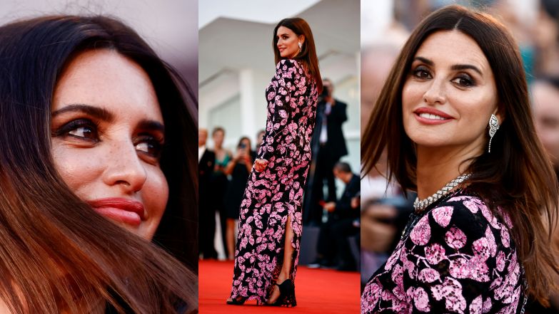 Nic więc dziwnego, że do Wenecji zawitała Penelope Cruz. 48-latki nie mogła ominąć premiera francusko-włoskiego dramatu "L’immensità", w którym gra główną rolę. Na imprezę poświęconą najnowszemu filmowi ze swoim udziałem przyodziała kreację z ostatniej kolekcji Chanel. Hiszpanka zaprezentowała się w czarno-różowej, koronkowej sukni z kwiecistym printem. Elegancką stylizację uzupełniła szpilkami z odkrytymi palcami i okazałą biżuterią, na którą składały się masywny naszyjnik, kolczyki i kilka pierścionków.