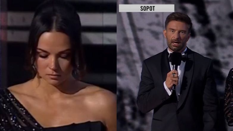 (...) Kiedy koncert już trwał, dotarła do nas informacja, ze Stanisław Soyka nie żyje. Z szacunku do artysty, jego rodziny i bliskich, z szacunku dla państwa, zdecydowaliśmy o przerwaniu transmisji z Opery Leśnej. W imieniu wszystkich artystów, organizatorów i stacji TVN chcielibyśmy złożyć wyrazy najserdeczniejszego współczucia rodzinie Pana Stanisława. Łączymy się w bólu i smutku. To dla nas naprawdę bardzo trudny moment - mówili prezenterzy ze sceny w Sopocie.