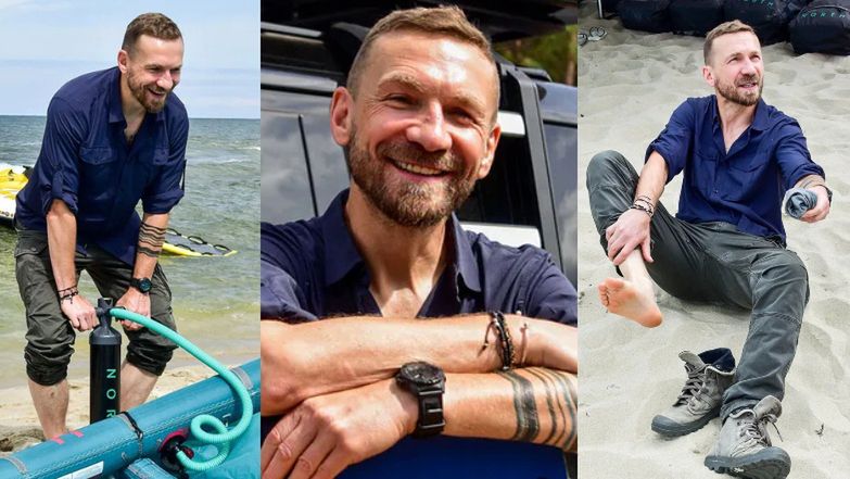 Zadowolony Przemysław Kossakowski pompuje sprzęt do kitesurfingu (ZDJĘCIA)