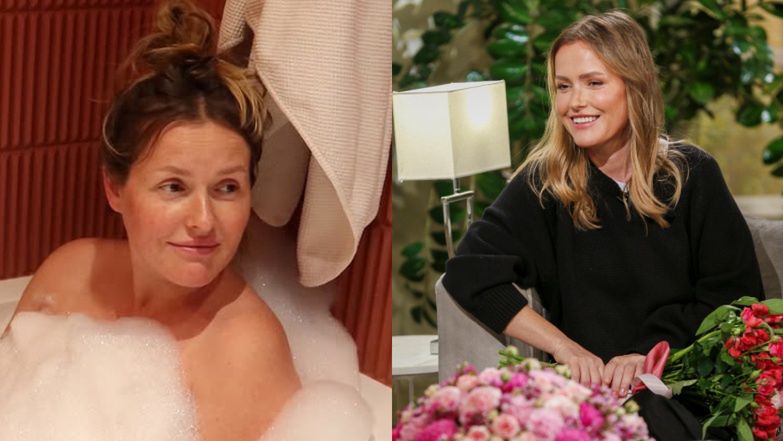 Olga Frycz tym razem wskoczyła do wanny, zasłaniając się pianą. Na wykonanej w łazience fotografii widzimy również jej młodszą córkę, która, jak się okazało, ustala poziom wody w wannie. W ten sposób stała się uczestniczką wymyślonej naprędce rodzinnej gry.