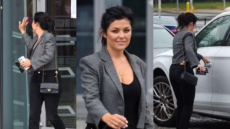 Na zdjęciach z wtorkowego przedpołudnia widzimy Katarzynę Cichopek, która szybko zmierzała do swojego luksusowego samochodu zaparkowanego nieopodal siedziby Telewizji Polskiej. Samotnej prezenterce, pomimo deszczowej pogody, nie schodził uśmiech z twarzy. Oprócz niewątpliwie dobrego humoru 40-latka zachwycała również klasyczną stylizacją. Cichopek postawiła na czarną bazę składającą się z podwiniętych jeansów i T-shirtu, na który włożyła krótką marynarkę w melanżowym kolorze.