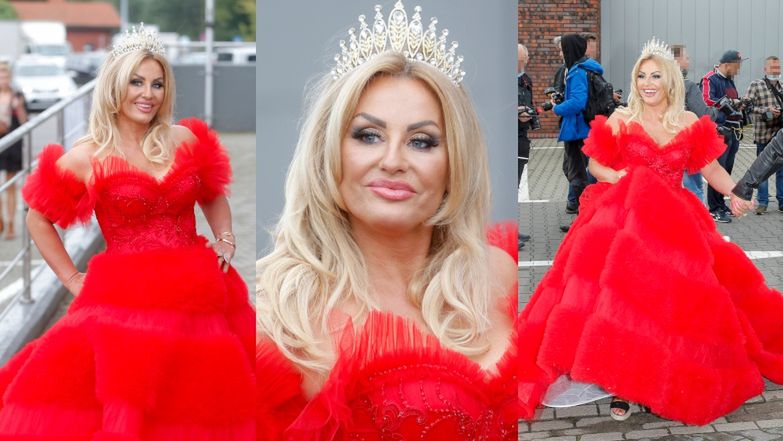 Ramówka TVN. Dagmara Kaźmierska zamiata chodnik w królewskiej sukni i z KORONĄ NA GŁOWIE (ZDJĘCIA)