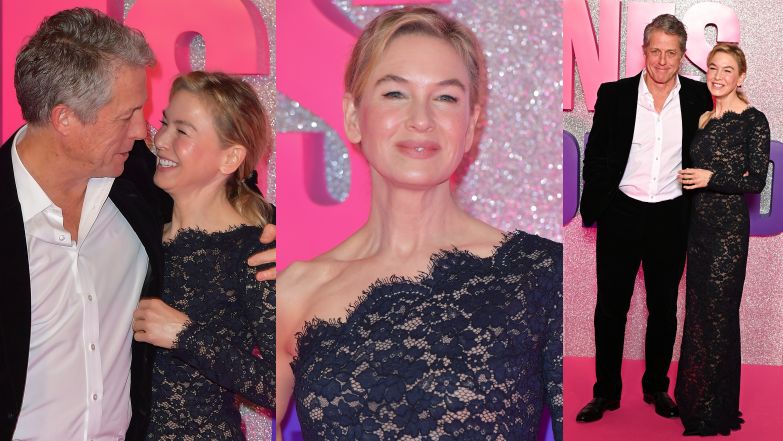 Renee Zellweger i Hugh Grant dokazują na premierze nowej części "Bridget Jones". Aktorka postawiła na koronkową kreację