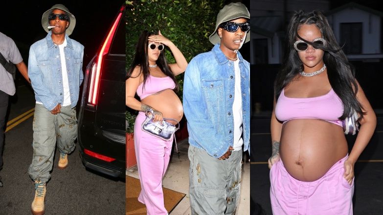 Już przy pierwszej ciąży piosenkarka chętnie odsłaniała swoje kształty, wybierając kreacje, które podkreślały jej ciążowy brzuch. Tym razem paparazzi przyłapali Riri na kolacji z ukochanym ASAP Rockym. Barbadoska zaprezentowała się w różowym komplecie składającym się z obszernych spodni i krótkiego topu. Rihanna nie zapomniała również o dodatkach - błyszczących okularach i diamentowych naszyjnikach. Stylizację uzupełniła również srebrną torebką i białymi sneakersami.