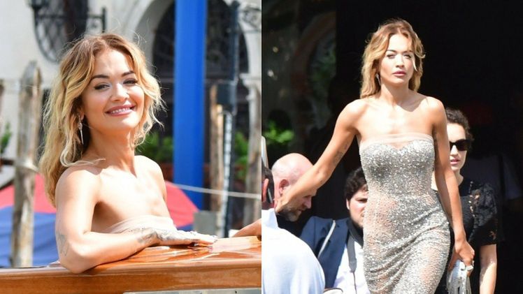 Rita Ora w PRZEŚWITUJĄCEJ sukni wysadzanej kryształkami bryluje na Festiwalu w Wenecji (ZDJĘCIA)