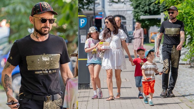 Rodzinny Patryk Vega spaceruje z żoną i trójką dzieci po mieście (ZDJĘCIA)
