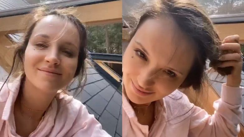 Natomiast już następnego dnia o poranku opublikowała wideo, na którym nieco rozczochrana i dopiero co po przebudzeniu wita się z Instagramem, zachwycając się widokiem na las...
