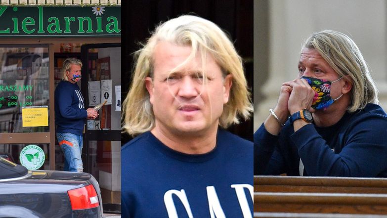 Rozczochrany Jarosław Jakimowicz jedzie do kościoła, a później po zioła... (ZDJĘCIA)