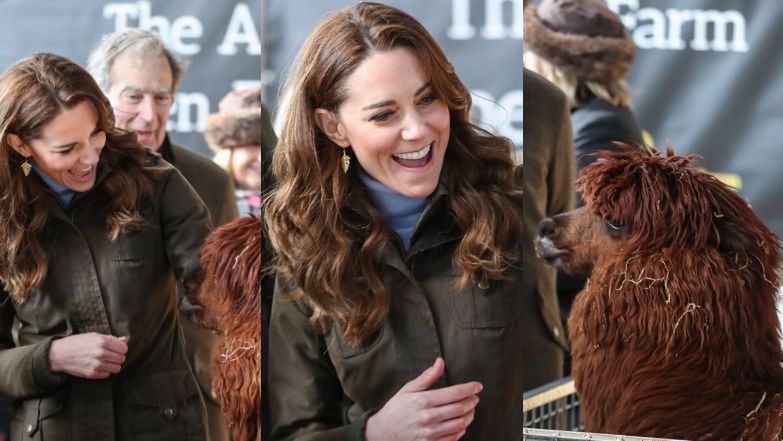 Roześmiana Kate Middleton zachwyca się alpakami podczas wizyty na farmie (ZDJĘCIA)
