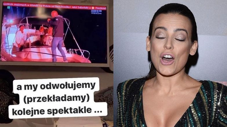 A tymczasem gdzieś w Polsce... A my odwołujemy (przekładamy) kolejne spektakle... - napisała pod zamieszczonymi na Insta Story filmikami.
