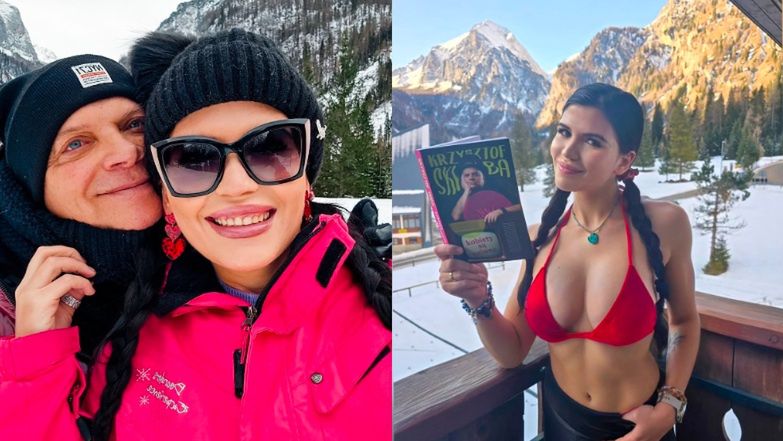 W czwartek para we wspólnym poście na Instagramie podzieliła się kolejną pocztówką z Włoch. Karolina rozgrzana lekturą książki męża pozuje na balkonie na tle zaśnieżonych gór. Kobieta ma na sobie długie spodnie i narciarskie buty, ale za to jest tylko w górze od bikini. W rękach oczywiście trzyma książkę męża.