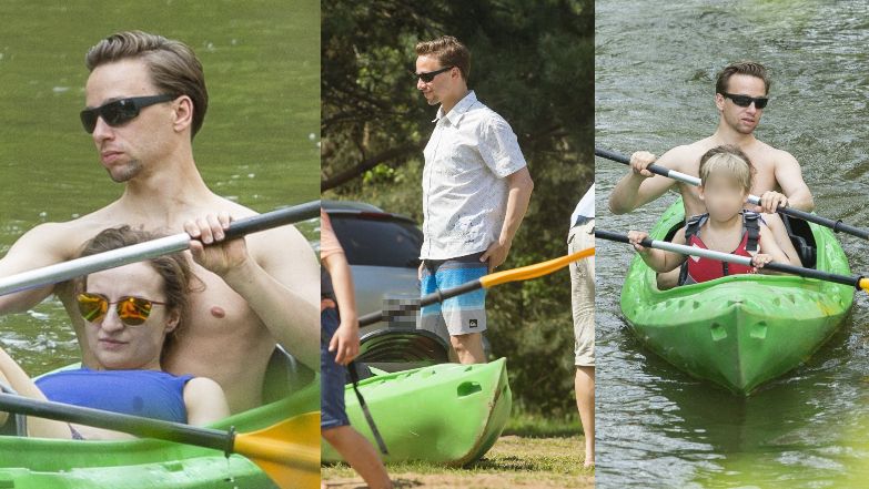 Zobaczcie Krzysztofa Bosaka topless, kajakującego w najlepsze z rodzinką po Świdrze. Słodko?