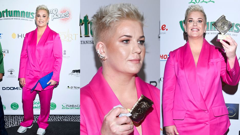 Na miejscu sportsmenka pojawiła się w nieco innej odsłonie, niż zwykliśmy ją obserwować podczas rywalizacji. Na potrzeby wizyty na ściance Włodarczyk założyła różowy oversize'owy garnitur, do którego dobrała sportowe obuwie i dyskretną biżuterię. Tak wystylizowana chętnie pozowała do zdjęć zarówno po przybyciu na galę, jak i po odebraniu nagrody.