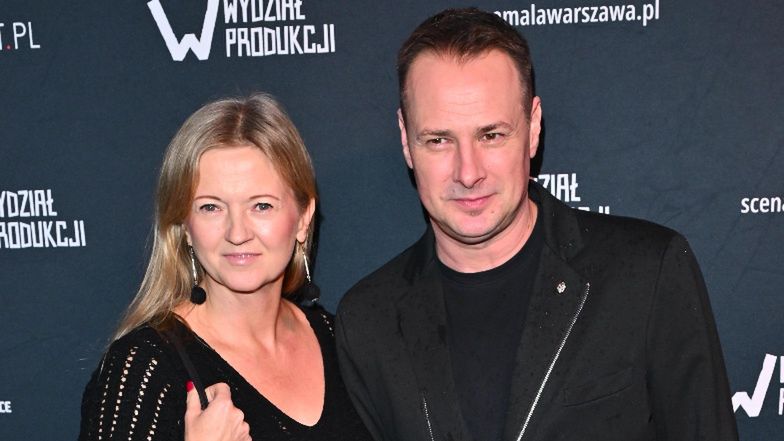 RZADKI WIDOK: Elegancki Paweł Małaszyński pozuje u boku żony na premierze teatralnej. Para od ponad 30 lat jest razem