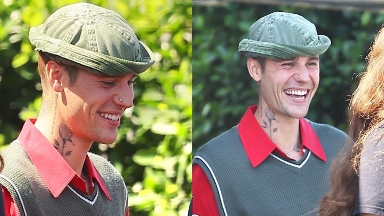 RZADKI WIDOK: Odziany w kolorowe fatałaszki Justin Bieber "przyłapany", JAK SIĘ UŚMIECHA