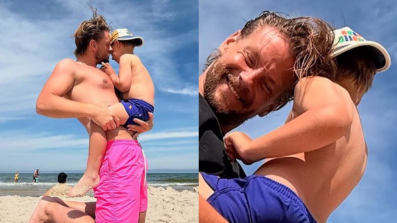 Sebastian Fabijański dokazuje z synem na plaży. Uroczy widok?