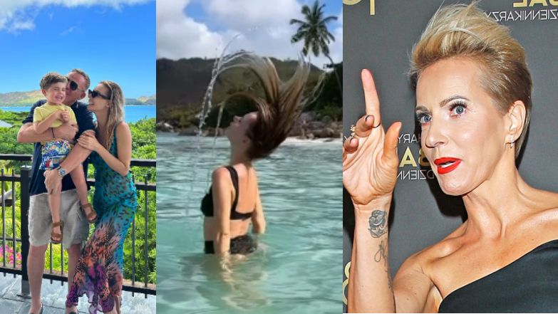 Tak się złożyło, że Jabłońscy przebywają właśnie na rodzinnym urlopie na Seszelach. Choć słowa Smaszcz z pewnością podniosły im ciśnienie, w miarę możliwości starają się cieszyć wypoczynkiem w raju. W środę ślubna ekspertka udostępniła kilka dowodzących temu publikacji. 36-latka jak gdyby nigdy nic wrzuciła film ukazujący widok z ich luksusowego apartamentu oraz beztroską fotografię z tarasu, do której zapozowała z Krzysztofem i Christopherem Alexandrem. Oprócz tego pochwaliła się nagraniem z dokazującą na brzegu pociechą, a także spowolnionym wideo, na którym możemy oglądać, jak w rytm utworu "Relax, Take It Easy" wynurza z oceanu mokrą głowę.