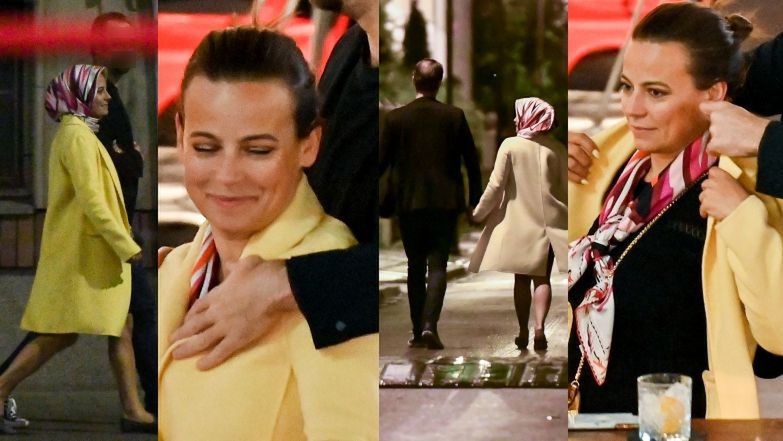 Po odwiedzeniu hali targowo-restauracyjnej para udała się na wieczorny spacer stołecznymi ulicami. Tego dnia aktorka postawiła na wyjątkowo skromną stylizację. Znana z wydekoltowanych sukienek Mucha miała na sobie kanarkowy płaszcz, zaś głowę owinęła babciną chustą. Co ciekawe, zrezygnowała także z butów na obcasie.