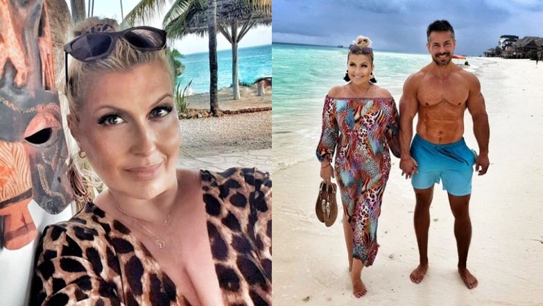Na zdjęciach widać, jak 51-latka ubrana w letnią kolorową sukienkę spaceruje z mężem po malowniczej plaży, pozując przed obiektywem córki. Marcin Łopucki miał nieco mniej okazałą stylizację i zaprezentował się w samych kąpielówkach, dzięki czemu mieliśmy okazję podziwiać jego wyrzeźbioną klatę i opalone ciało. Na ostatniej fotografii widzimy już całą rodzinkę w komplecie.