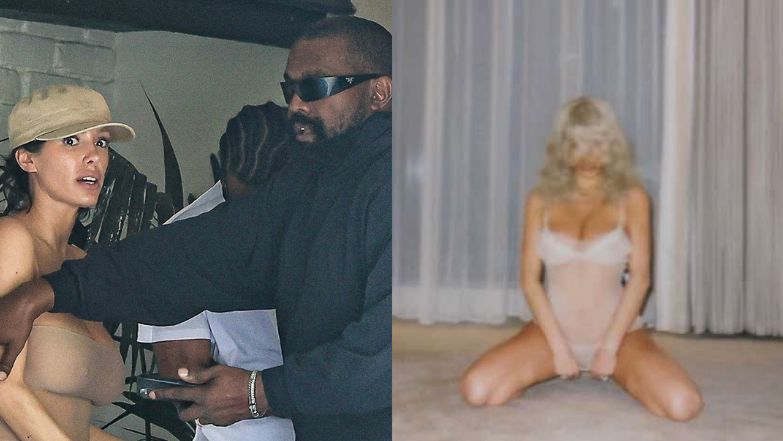Na "nowych" kadrach wrzuconych do sieci możemy podziwiać Censori jedynie w staniku, skąpych majtkach i prześwitującym materiale przypominającym top. Na głowę zaś przywdziała blond perukę.