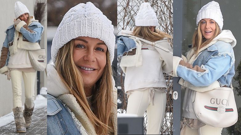 Na zdjęciach zrobionych przez fotoreporterów widzimy, jak wypoczęta Rozenek pewnym krokiem zmierza na wyczekaną wizytę u manicurzystki. Tego dnia Gonia postawiła na zimową kreację w odcieniach beżu. Pokazała się więc w wygodnych jasnych spodniach, bluzie Gucci, wartej ponad 2 tysiące złotych kurtce z jeansowymi wstawkami, wełnianej czapce i ciepłych śniegowcach. "Look" uzupełniła torebką tej samej włoskiej marki, co bluza. Myślami będąca jeszcze w Tulum wystylizowana mama Henia zapomniała jednak o maseczce ochronnej.