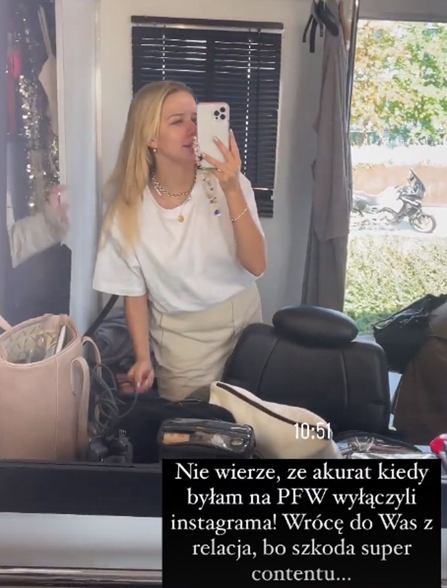 Na początku dzwoniłam do operatorów i mówiłam, że proszę mi włączyć internet za granicą. Ja wczoraj byłam w Paryżu na Fashion Week, więc dla mnie to była idealna okazja, żeby publikować fajne treści, content związany z modą, a tu Instagram się załamał... - żaliła się.