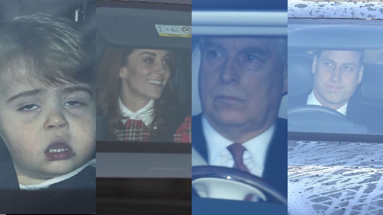 Świąteczny zjazd royalsów u królowej Elżbiety II: Rozbawieni księżna Kate i książę William, znudzony wizytą Louis, przerażony książę Andrzej... (ZDJĘCIA)
