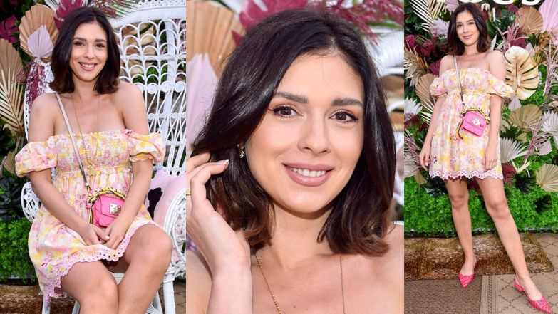 Ta ostatnia pojawiła się na sopockiej imprezie w letniej, dziewczęcej stylizacji. 30-latka postawiła na kwiecistą sukienkę odsłaniającą ramiona, do której dobrała różowe buty z czubem i ozdobną klamrą. Wakacyjny "look" uzupełniła przewieszoną przez ramię mini torebką.