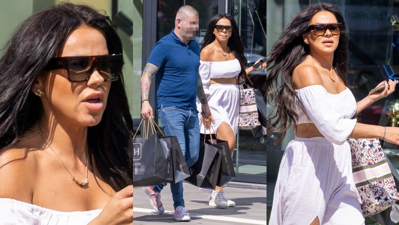 Sylwia Bomba wychodzi ze sklepu w towarzystwie obładowanego jej łupami kolegi w stylizacji za prawie 20 TYSIĘCY ZŁOTYCH (ZDJĘCIA)