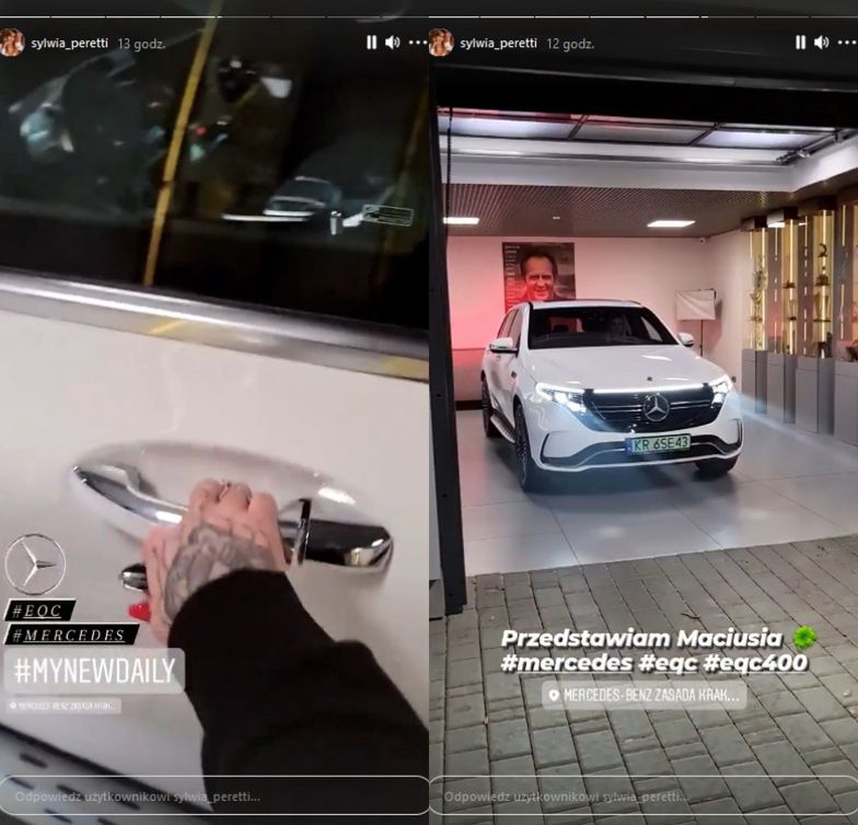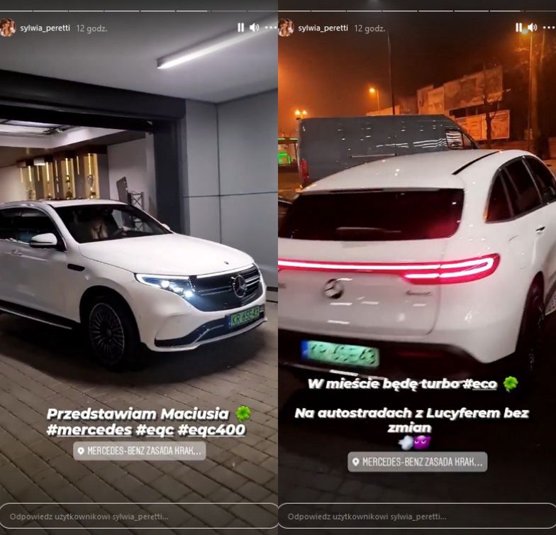 Sylwia nie zamierza jednak zaprzestawać prezentacji swojego dorobku, co potwierdzają ostatnie zamieszczone przez nią na InstaStories nagrania. W środę "królowa" pokusiła się o relację z zakupu kolejnego auta, pokazując filmy z salonu samochodowego. Tym razem padło na wartego ponad 350 tysięcy elektrycznego Mercedesa EQC 400. Peretti jest już bowiem posiadaczką rzadkiego BMW, za którego zapłacić musiała ponad 700 tysięcy złotych, Audi R8 V10 Plus oraz Forda Mustanga GT.