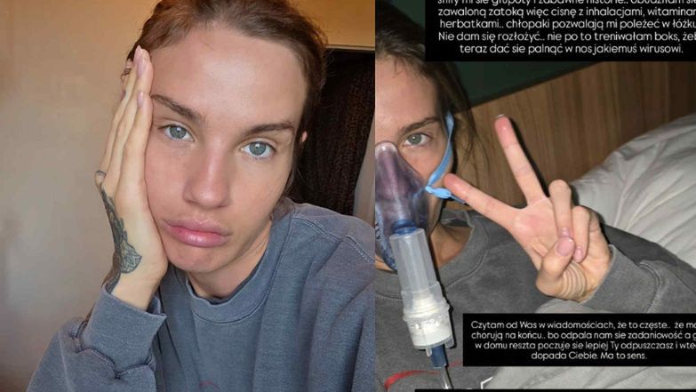 Nie dam się!!! Na na na!!! Całą noc się pociłam jak na maratonie (w którym nigdy nie biegłam btw), aż musiałam zmieniać dresy w nocy. Śniły mi się głupoty i zabawne historie... Obudziłam się z zawaloną zatoką, więc cisnę z inhalacjami, witaminami, herbatkami... Chłopaki pozwalają mi poleżeć w łóżku... Nie dam się rozłożyć, nie po to trenowałam boks, żeby teraz dać się palnąć w nos jakiemuś wirusowi - pisała Karolina Gilon na Instagramie.