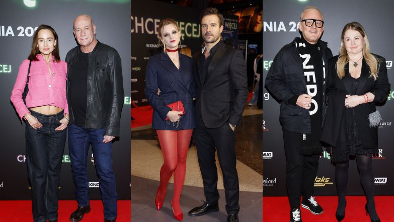 Warszawska premiera filmu "Chcę więcej" przyciągnęła sporo znanych oraz lubianych twarzy. Niektórzy przyszli na imprezę solo, a inni zdecydowali się wyciągnąć na ściankę swoich bliskich. Nie zabrakło także zakochanych par. Był m.in. Piotr Stramowski z ukochaną Natalią Krakowską, która w oczy rzucała się dzięki czerwonym rajstopom.