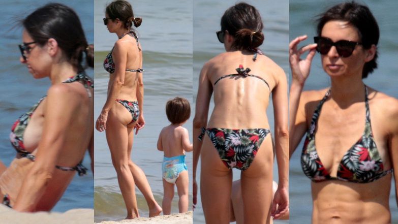 Szczupła Marta Kaczyńska W BIKINI relaksuje się na plaży w towarzystwie syna (ZDJĘCIA)