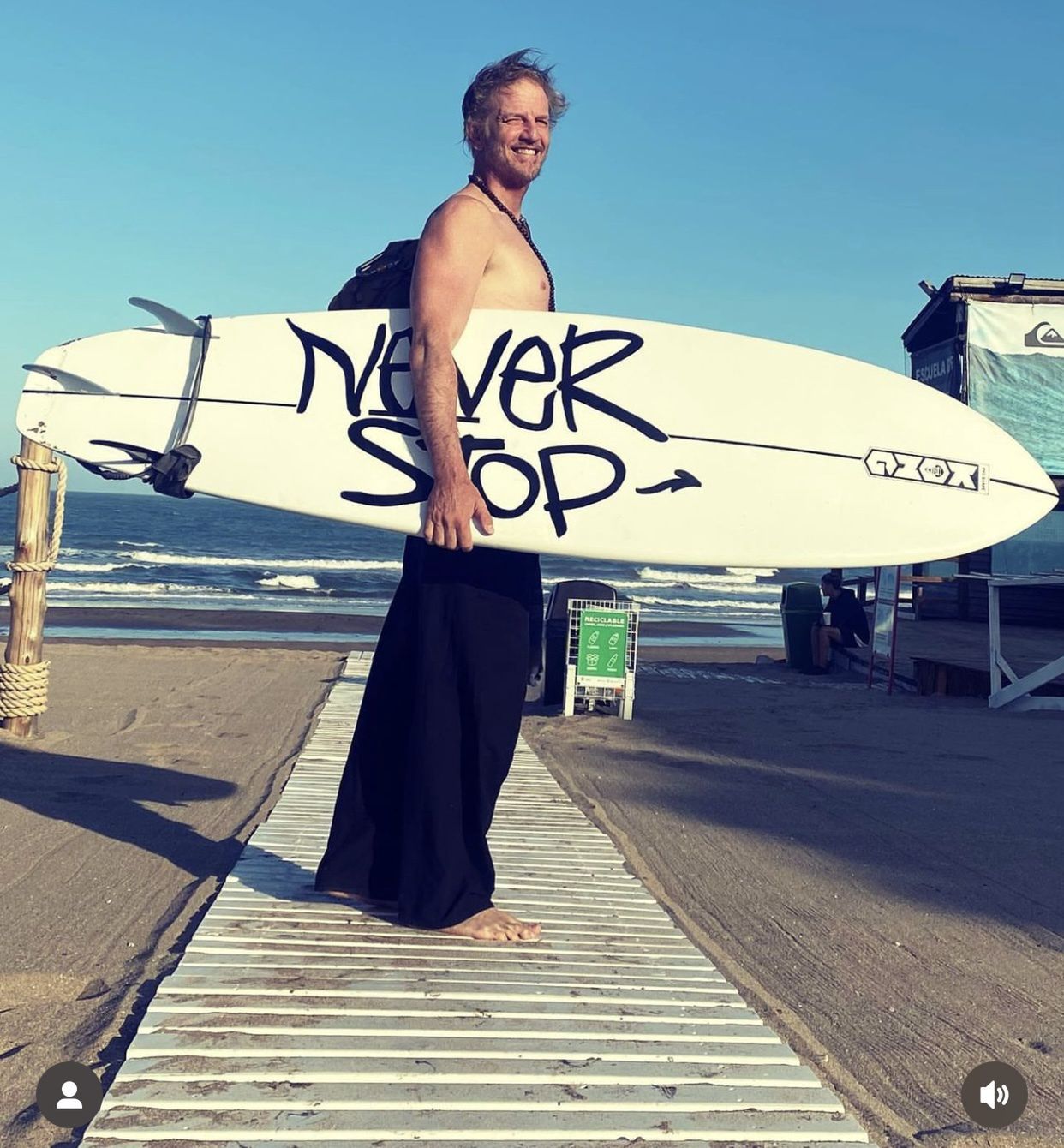 Mężczyzna mimo upływu 20 lat trzyma się świetnie. Na swoim Instagramie chwali się między innymi talentem surferskim.