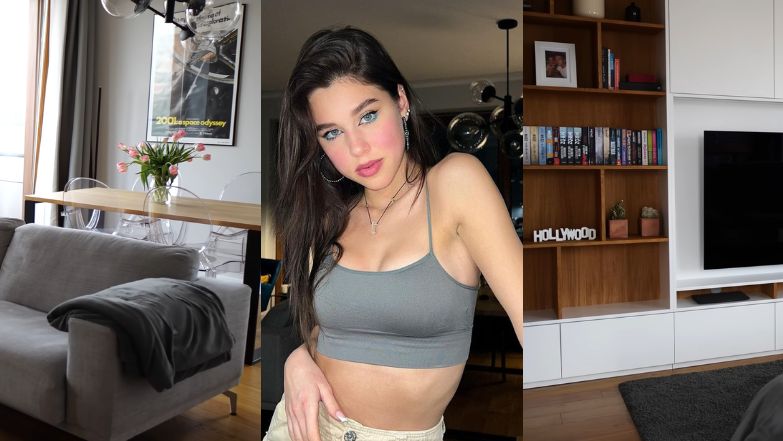20-letnia tiktokerka zaprezentowała, jak wygląda miejsce, w którym na co dzień spędza najwięcej czasu. W centrum niewielkiego, lecz przytulnego salonu stanęła szara sofa.