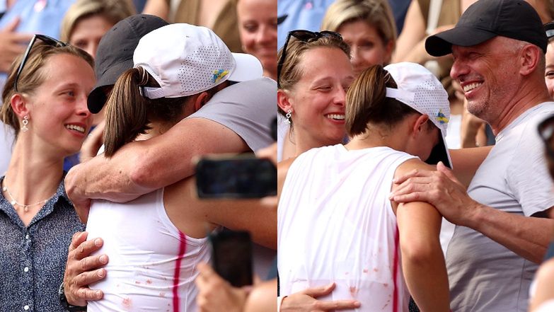 Tuż po wygranej w finale Rolanda Garrosa Świątek pobiegła do swojego boksu, by świętować sukces wraz z ekipą oraz rzecz jasna obecnymi na miejscu członkami rodziny. Uradowana zwycięstwem tenisistka rzuciła się w ramiona ojca, który powiedział do niej kilka słów. Następnie przytuliła stojącą tuż obok siostrę, a wkrótce do rodzinnego uścisku z uśmiechem przyłączył się także Tomasz Świątek.