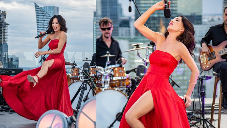 Temperamentna Justyna Steczkowska śpiewa i gra nogą na dachu luksusowego hotelu