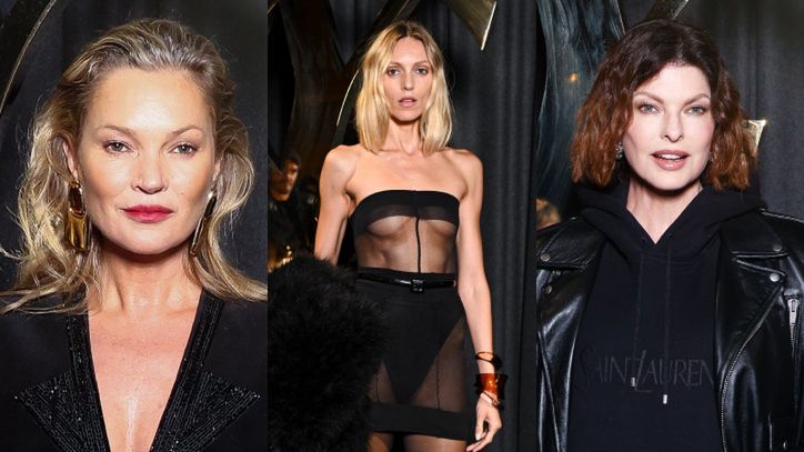Tłum gwiazd na pokazie Saint Laurent: rozgogolona Anja Rubik, szykowna Kate Moss, Linda Evangelista w bluzie